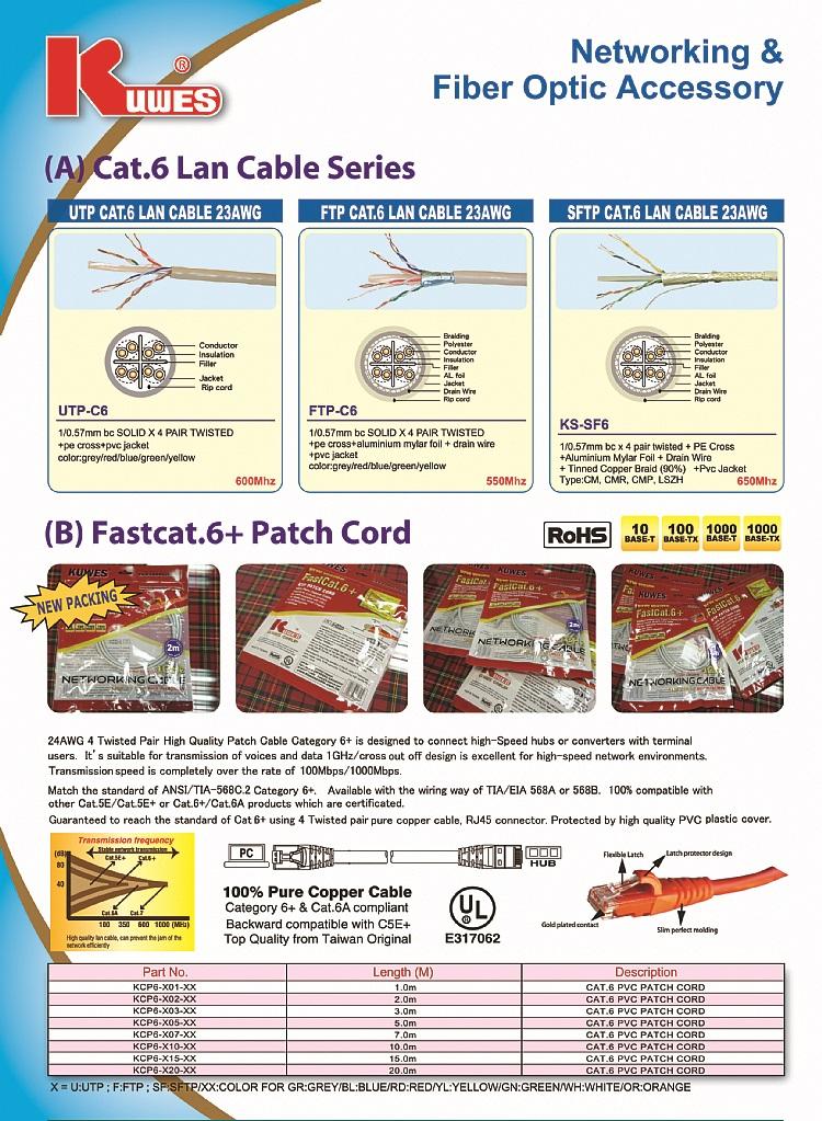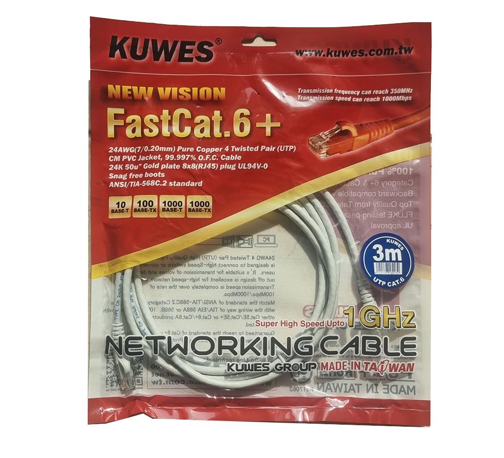 • ETERNET CAT 6 CABLE This Kuwes High Performance Cat6 RJ45 Ethernet patch Cord Lan Straight Network Cable Category 6E. Transmits data at speeds up to 1 Gigabit per second. Cat-6 patch cable for wired home and office networks.
