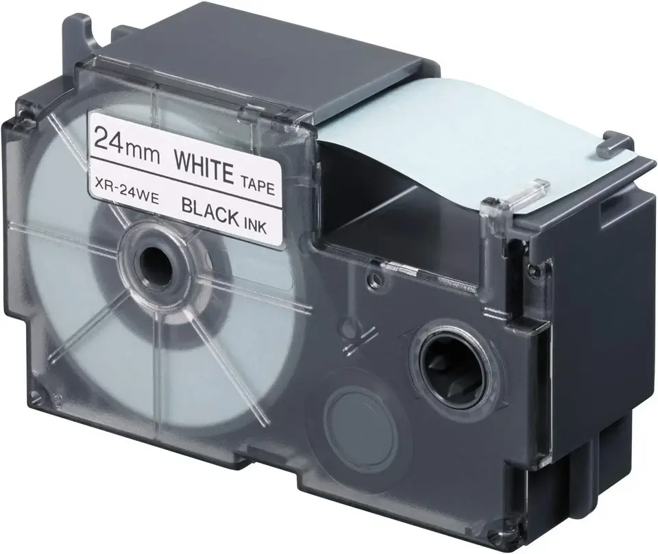 Organize with confidence using the Casio XR-24WE1 Label Tape. Designed for clarity and reliability, this genuine 24mm black-on-white label tape delivers crisp, legible text that stands out in any environment. Whether you’re labelling files, tools, cables, or storage boxes, it ensures a clean, professional look every time
