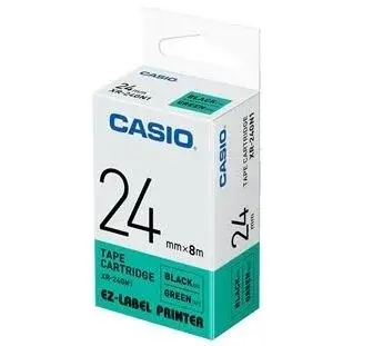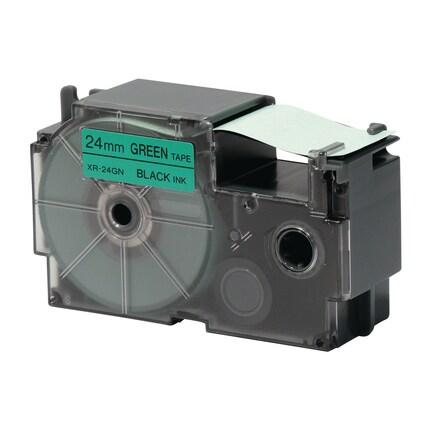 Organize with confidence using the Casio XR-24GN Label Tape. Designed for clarity and reliability, this genuine 24mm Black-on-Green label tape delivers crisp, legible text that stands out in any environment. Whether you’re labeling files, tools, cables, or storage boxes, it ensures a clean, professional look every time.