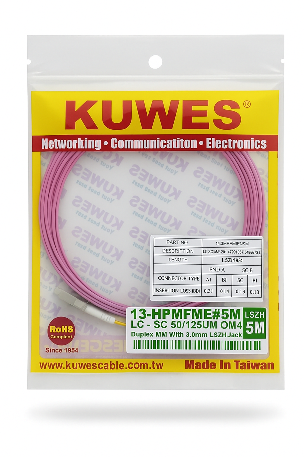 The OM4 fiber offers enhanced bandwidth and longer reach than OM3, ensuring optimal performance in high-density, high-speed applications.