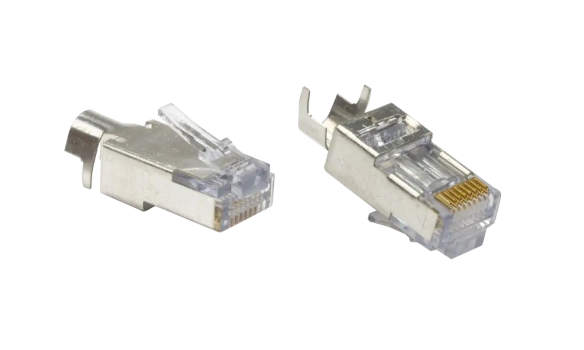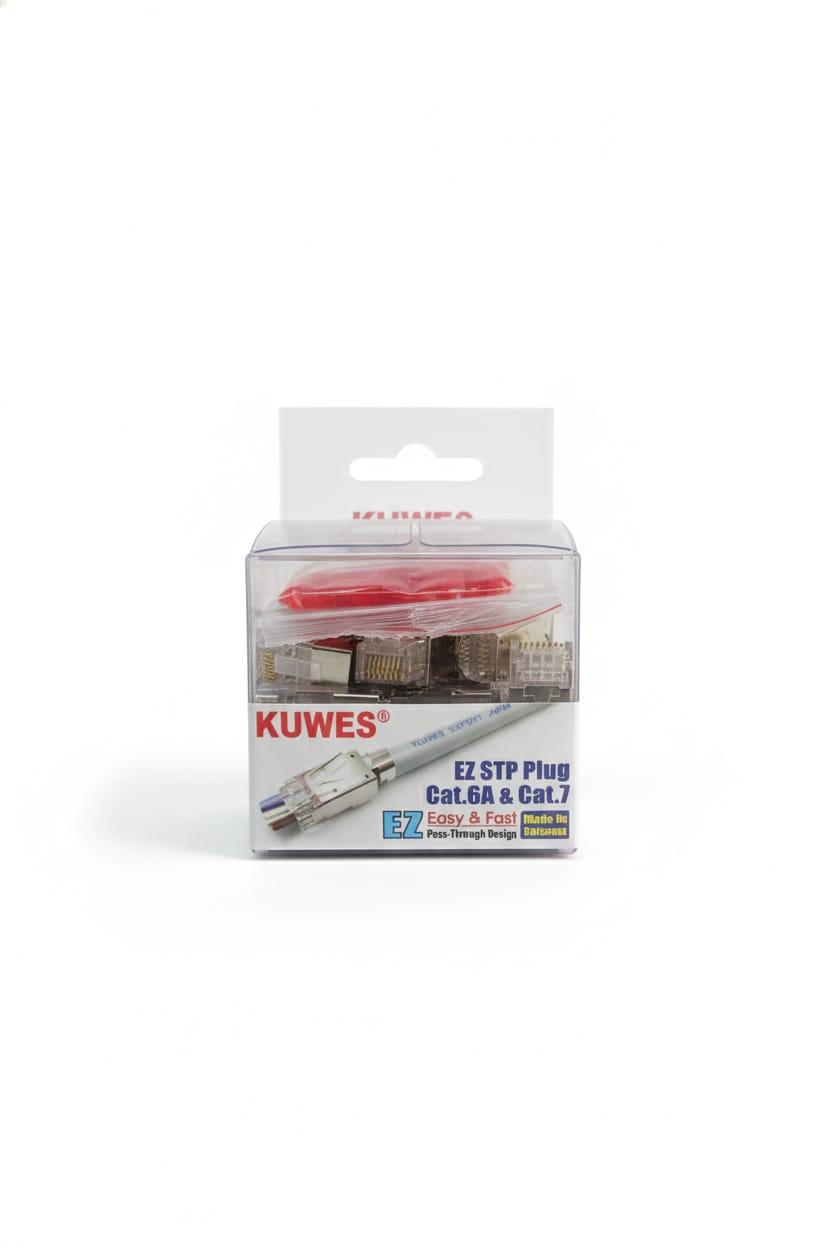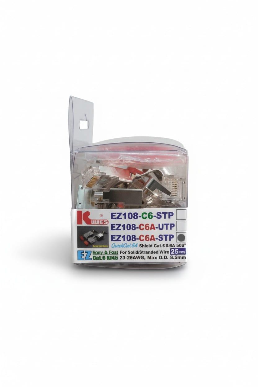 The KUWES EZ108-C6A-STP is a shielded Cat.6A EZ RJ45 connector designed for high-performance 10G network installations.