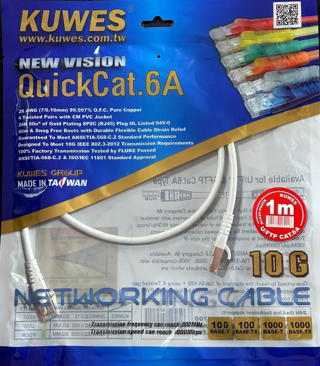 KUWES U/FTP CAT6A LAN PATCH CORD GREY 1 MTR