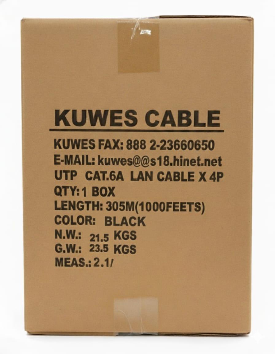 KUWES CAT6A U/UTP 10G Solid 4 Pair 23AWG LAN Cable (305 Meter Roll)