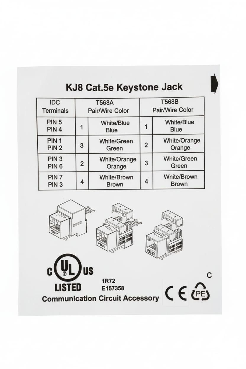 • Wiring Schemes: T568A and T568B (color-coded labels)