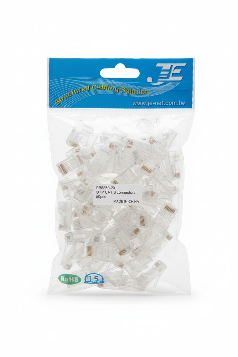 The JE PB8850-2X is a high-quality UTP Cat.6 RJ45 connector, engineered for efficient data transmission in structured cabling systems.